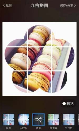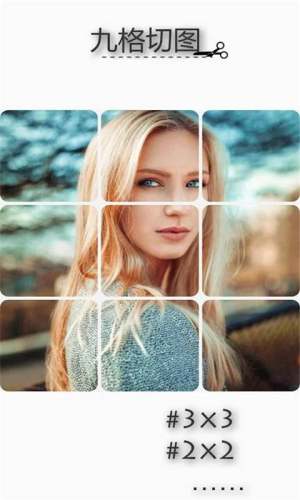 最美九宫格可以把一张图片切割成9张,通过不规则的组合组成大图,分享到朋友圈、微博等地方。