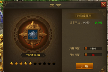 勋章的主要作用是增加攻击,使用声望可升级勋章。