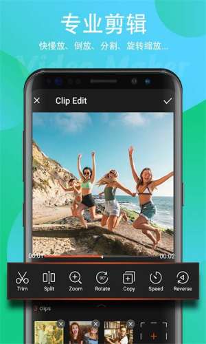 全面适配微信、微博、快手、抖音、Facebook、Instagram等视频制作和社交应用,各种滤镜/贴纸/音效/主题/美颜功能任你选择,为你制作高清酷炫的视频、小电影,是摄影爱好者的视频剪辑,微电影制作神器!