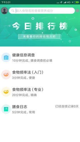 食物频率法(专业)是估计被调查者在指定一段时期内吃某些食物的频率的一种方法,可以比较精确地了解各种营养元素的摄入情况。三天膳食日志则便于用户记录每日膳食情况,结合三天及其以上的日志进行营养元素摄入分析。