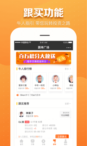 其中涵盖行情数据、策略分析、积分为一体的创新型交易,可促进用户了解数据趋势,降低投资风险,利用互联网技术让更广大的投资着安全、高效、轻松的投资。
