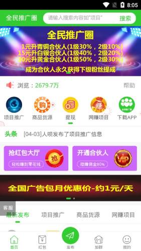 全民推广圈是一个集发布广告,产品,项目,微信引流,做任务领红包,推广赚钱于一身的平台。