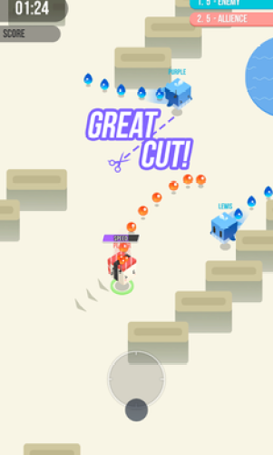 2、与来自世界各地的玩家一同开始竞技,在切其他玩家的尾巴与被被人切掉自己的尾巴中享受各种竞技的快乐。