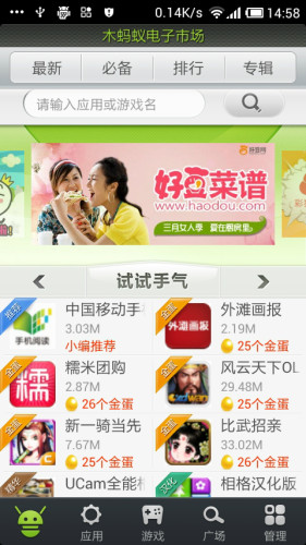 木蚂蚁应用市场是专门服务安卓用户的的第三方安卓电子市场,在这里可以找到新鲜国内外应用及游戏;
