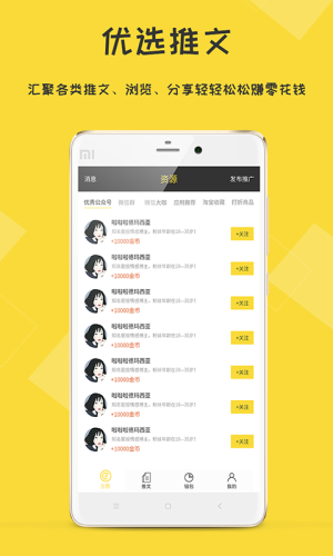 - 优选推文,汇聚各类推文、浏览、分享轻轻松松赚零花。