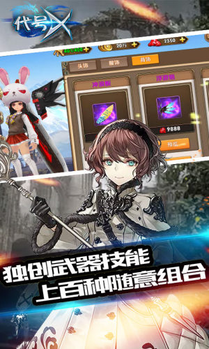 《代号X》通过Unity3D引擎打造是一款3D无职业划分,支持玩家间实时对战,强力英雄通关副本就送的游戏,武器即技能,百种武器,自由搭配,感受炫酷的视觉效果,独特的制作系统,游戏内强力装备均可自行打造,海量的属性时装任君选择,成为捍卫兰泽拉诺的勇士吧。