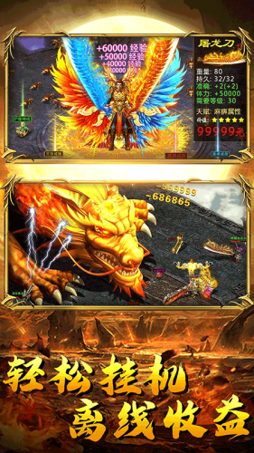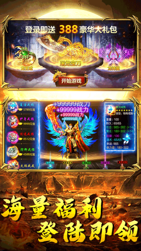宏大的世界观,将上古神话背景与游戏体验做了完美的结合,高阶神装、绚丽翅膀、稀世称号、挂机升级、离线收益、野外PK、装备回收、自由交易等玩法悉数登场!丰富的隐藏地图和BOSS资源待玩家探寻。游戏不但还原了传奇的经典元素,更融入了一系列的创新玩法,让玩家一边回味经典,一边探索新奇。