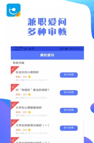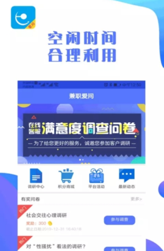 兼职爱问平台提供专业的调查问卷服务,您可以在平台参与调查任务。