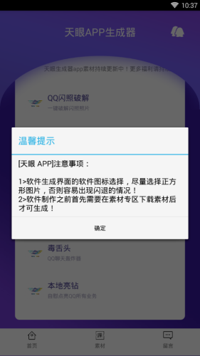 天眼APP一键生成工具,一款便捷的一键自动生成工具,功能丰富,拥有一键破解QQ闪照照片、一键制造QQ半透明名片、刺激战场准心助手、一键解析抖音无水印视频等多种功能,欢迎下载使用。