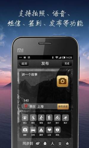 4、支持拍照、语音、短信、签到、发布等功能