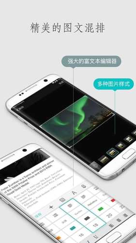 -简洁优雅的写作界面,创新的文字排版方式,是世界首创,可以在指尖上就能轻松排版出漂亮的文字。