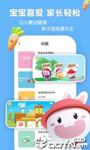 成长兔英语(原宝宝玩英语)是儿童英语启蒙教育App, 是0-6 岁幼儿英语启蒙教育的开创者,亲子互动教学模式,陪孩子从小开口说英语,培养少儿英语口语和儿童英语听力水平。创办以来,成长兔英语已累计服务超过400万中国家庭用户,遍及中国300多个城市。