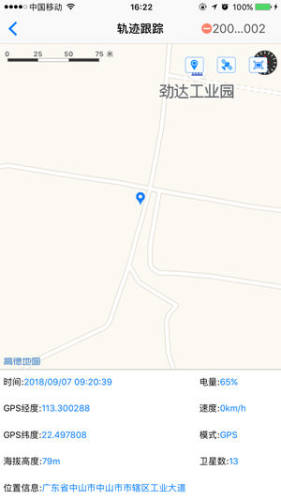 查看当前监控设备的实时轨迹,使用该功能,设备必须先开通数据上传功能,设备在运动,在会在地图上实时的画出行驶路线。