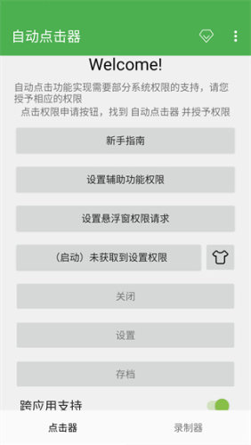 应用需要借助用辅助功能权限及悬浮窗权限来实现自动点击,在使用前请正确设置应用权限