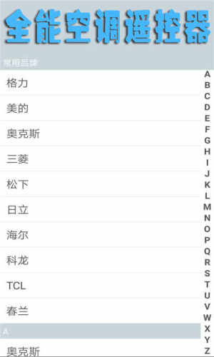 全能空调遥控器,一款能让你的手机变成万能的空调遥控器,支持格力、美的、奥克斯、三菱、松下、日立、海尔、科龙、TCL以及春兰等各类品牌的空调。