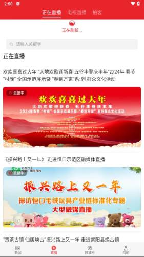 进入直播专区,可以观看正在直播的新闻报道