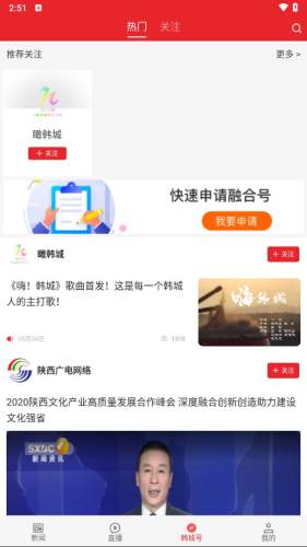 点击韩城号,在此可以关注官方微博、微信、点播电视