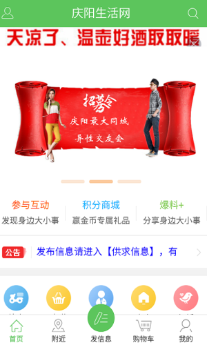 庆阳生活网是一款专注于庆阳本地生活的服务app。有了庆阳生活网app,就能为你提供房产交易、商家店铺、征婚交友、线上活动等功能,让你的生活变得更加便捷。觉得这款软件还不错的小伙伴快来下载吧!