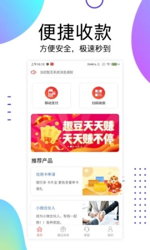 趣生财钱包是致力于为中小微商户、移动商户、个人用户提供方便安全的多样性快捷支付收款服务的手机软件。平台基于不同的支付场景,推出了多种支付方式供用户选择使用,具有刷卡收款、极速到账的特点,同时提供了多种便民服务。