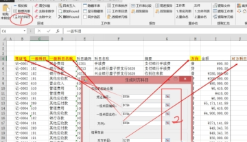 点击【对方科目】-在弹出窗口中选择四个关键字段“凭证号”“一级科目编码”“一级科目名称”“方向”,然后选择生成对方科目的存放位置,注意,一定要存放在第一笔凭证的起始行的某一列,如图示。