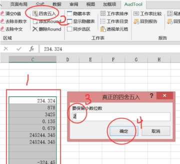 说明:在编制底稿、报表、和附注的时候经常需要统一保留小数,但是excel自带的功能只能设置显示的小数,但是更多的小数位只是被隐藏了,导致计算报表结果经常出现尾差。该四舍五入功能可以将其直接转换成想要的小数位数的值。