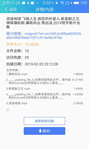 3.操作便捷,一键复制磁力链接,也可直接跳转到迅雷等软件解析资源