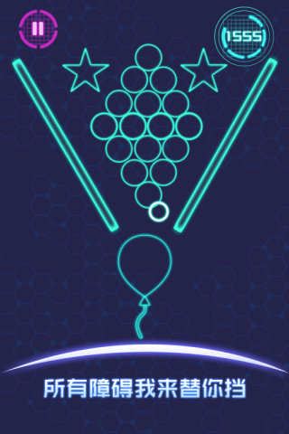 简洁的画风下有一个气球不断上升飘向天空,但是在飘向天空的过程中却有无数个障碍物阻挡,有尖锐的障碍物甚至还可以扎破气球,如果气球被扎破,那么游戏也就结束了,所以玩家们需要采用屏幕中间游戏给出的一个小球,也就是我们俗称的“盾牌”,用它来保护气球上升过程中遇到的危险,不断清除障碍物,保护气球顺利升空。