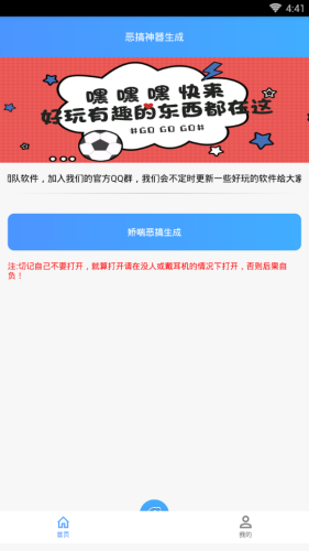 恶搞神器生成,一款好玩又有趣的恶搞软件,界面简洁,简单实用,一键生成娇喘音效,发送给好友,真实又有趣,恶搞整人的必备工具,喜欢的朋友欢迎下载使用。