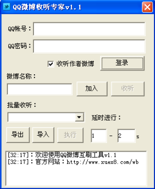 QQ微博收听专家是一款只需提供对方的昵称,即可瞬间收听对方微博的免费工具;本工具支持导入导出功能,快速收听功能等等,欢迎下载使用。