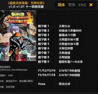 超级龙珠英雄世界使命修改器是超级龙珠英雄世界使命这款游戏的修改器,此修改器功能强大,包括无限生命,无限金钱和一击必杀等十一项修改功能,由风灵月影制作,大大降低了游戏难度,需要的小伙伴赶快来下载体验吧!