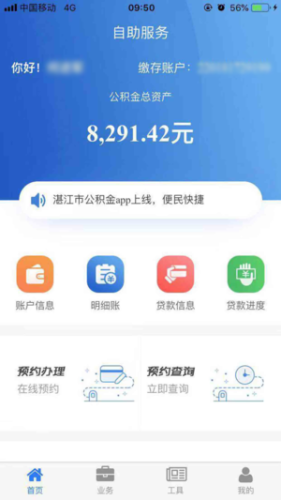2、业务办理。能够在线办理提取预约、贷款预约、预约查询、退休销户提取、低保提取、偿还公贷提取等业务。