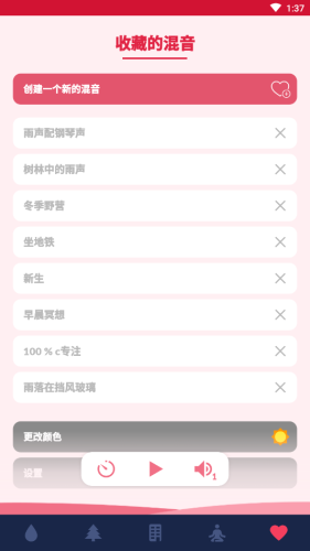 所有的声音都是可进行自定义。例如,如果您喜欢,您可以添加更多的鸟鸣声或火堆燃烧的噼啪声。