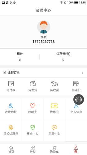 全部订单、收货地址、收藏夹、优惠券
