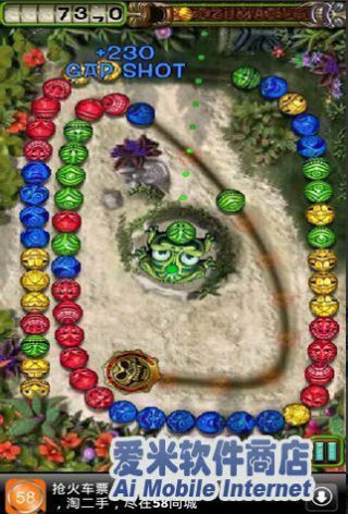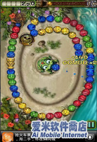 祖玛的复仇延续了一贯的祖玛游戏风格,广大爱好者一定会喜欢的。古老的印加游戏风格,神秘的背景音乐,绚丽的游戏图片,成就了祖玛这一款老少咸宜的游戏。祖玛游戏的玩法很简单:游戏画面的中间有一只青蛙,它会吐出不同色彩的球球 ,环绕着这只青蛙的是载着五颜六色的球。