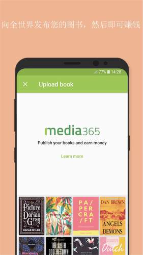 Media365书籍阅读器,一款专业的图书阅读软件,页面简洁,书籍多样,让您免费阅读精彩书籍。软件还支持作品发布,您可通过这款软件发布您的书籍,通过书中广告来赚取收益,喜欢的小伙伴欢迎下载。