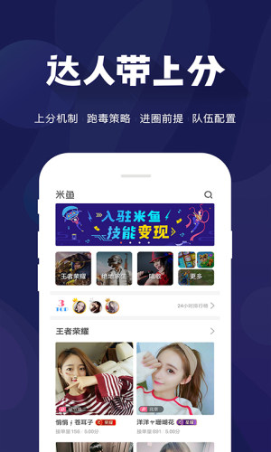 游戏达人可入驻米鱼,让能力变现的同时还可结交兴趣相投的朋友。