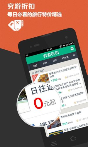 汇聚全网最新最全的出境旅行折扣信息 你每日必看的旅行特价精选 “穷游折扣不是普通团购,更不售卖旅行产品,我们以帮助你找到全网最给力的真实折扣为宗旨” 在这里你可以获得—— 编辑超值推荐:以客观中立的立场,由编辑们用心筛选出的全网超值旅行产品 最全出境折扣:包括全网最全的出境机票、海外酒店、邮轮等多品种出境优惠 免费会员独享:免费注册,享受“穷游er独享”全网最底价 超值0元机票:参与不定期的0元机票会员疯抢活动