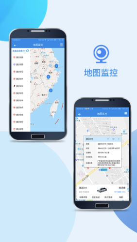 1.监控:对车队、车辆进行地图,列表和视频多种方式进行监控,对车辆运行轨迹、车辆状态了如指掌,车辆报警实时推送随时掌握车辆状况。