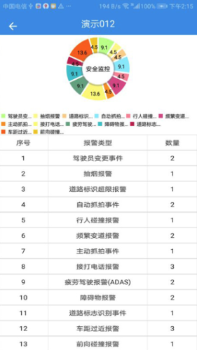 2.报表: 可以对车辆进行历史性行驶里程、部标报警,ADAS主动安全报警(包含照片,视频)、事件照片、停车统计、费用分析等多方位、多方式、多状态查询分析,让您随时掌握车辆历史使用情况。