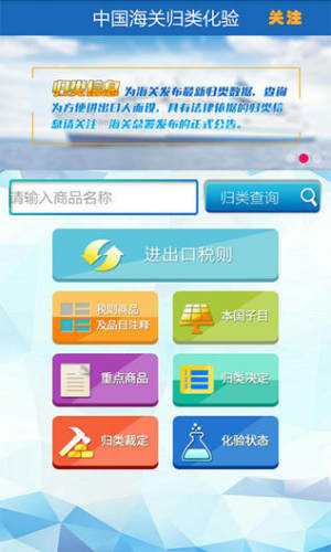 中国海关归类化验app是一款海关最新归类、化验信息实时查询服务平台,软件由海关总署关税司、天津归类分中心开发,需要的朋友欢迎前来下载使用。