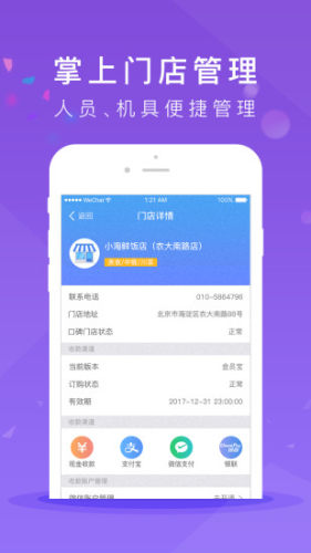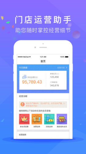 可以实时查询门店收银、经营数据,对人员、机具进行快速便捷的管理,