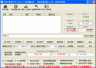 歪歪多开不掉线、一键关闭全部歪歪、打不开歪歪修复、批量隐藏歪歪图、软件可以批量切换频道、XP系统登录限制破解、清空帐号密码数据缓存、频道秒封ID/IP工具、一键进/换频道、批量在线状态操作、拒收频道图片/表情、关闭所有频道舞台、退出所有YY频道、刷花功能、小号注册、批量修改昵称。