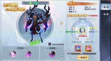 无双系统,在玩家达到60级的时候即可解锁。角色在战斗的时候点击“无双”变身按钮,即可瞬间变身无双状态,瞬间提升属性,并拥有全新震撼技能。