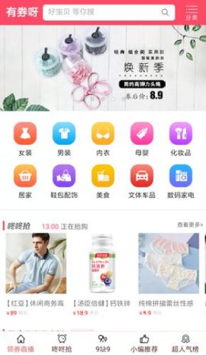 5、折扣特卖:千万商家云集打折,女装、男装、鞋包、化妆品、护肤、家居、母婴、零食、数码电器、每日优鲜...在今日有券app多点优惠,省钱快报一网打尽!