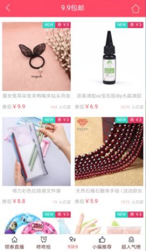 2,九块九包邮专区,用券后淘宝,天猫商品9块9包邮,每天几百款,超值。