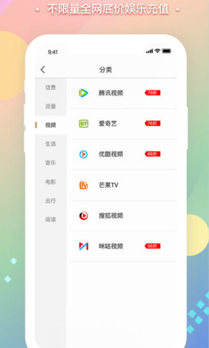 --优酷、腾讯、爱奇艺、芒果、视频娱乐5折起,半年无限量,一份钱开两个会员