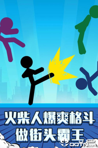 点击屏幕控制火柴人进行殊死搏斗,通过攻击对手的头部、手臂、肩膀、腹部、腿部来获得积分,扣除对手的血量,最终获得整场的胜利,成为无与伦比的街头霸王!
