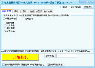265G九龙朝辅助是一款不修改游戏内存的辅助工具,完全模拟人工升级操作,彻底解放您的双手,本辅助拥有一键主线、自动选择阵营、自动副本、自动挂机等功能,欢迎下载使用。