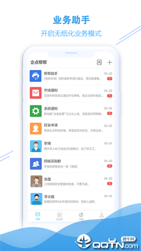企点帮帮app是专为建筑从业者制作,软件拥有即时通讯、协同办公、业务工具、建筑资源等功能,可以帮助建筑从业者更好的办公,觉得不错的朋友欢迎前来下载使用。