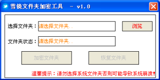 雪镜文件夹加密是一款简单的文件加密工具,本软件界面清晰,一目了然,您只需要简简单单的加密文件即可;但是要注意的是系统文件夹不能加密切记。